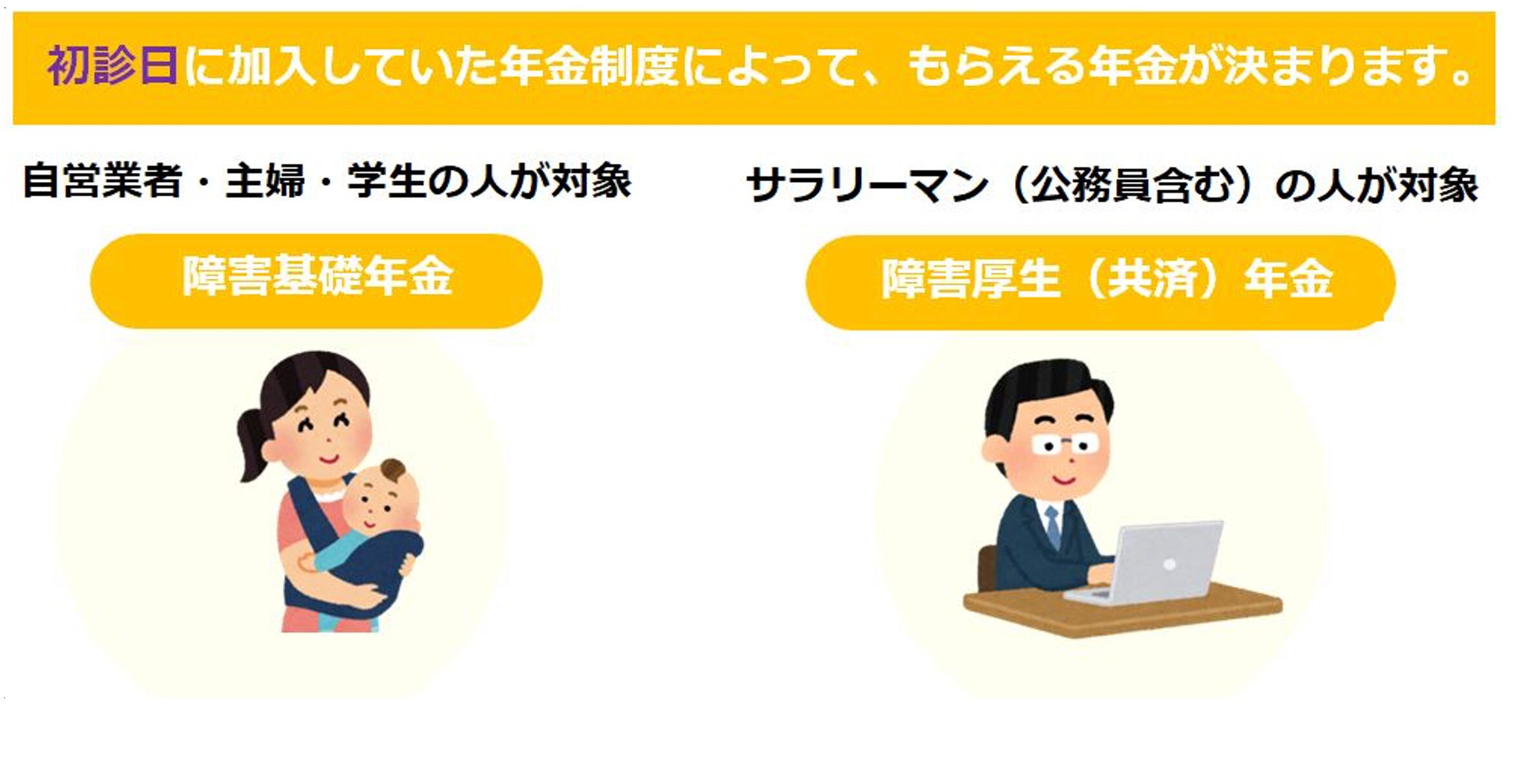 障害年金は障害の原因となる病気やケガを負ってしまった時に、加入している年金の種類によって受け取れる金額が異なります。