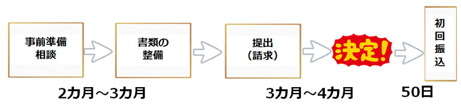 障害年金は申請の準備を始めてから約6~9カ月かかることが一般的です。当事務所では皆様に1日でも早く障害年金を届けるべく、精一杯サポートさせていただいております。